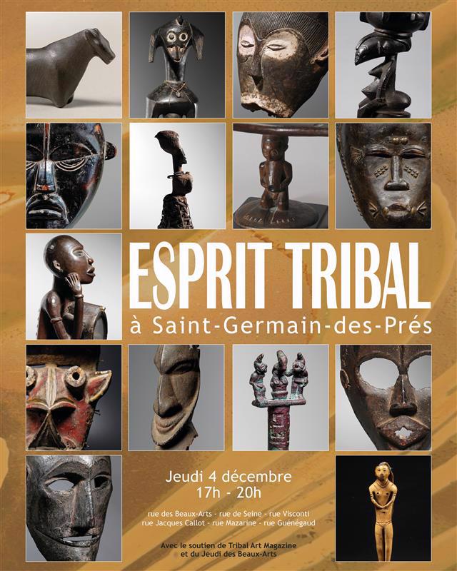 Esprit Tribal, qui réunira 15 galeries de Saint-Germain-des-Prés. Cette soirée invitera les visiteurs à découvrir une sélection de masques, de statues et d’objets d’Amérique, d’Asie, d’Océanie et d’Afrique dans les galeries des rues des Beaux-Arts, de Seine, Mazarine, Callot, Visconti et Guénégaud.